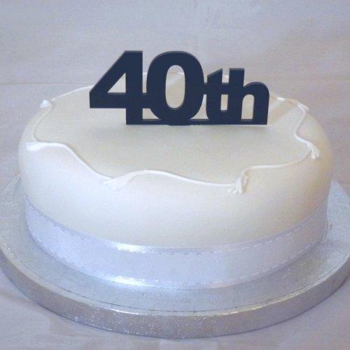 - "40th" Cake Topper 6cm (2.5inch) Black Solid Acrylic (Overall size 10cm x 12cm inc spike)