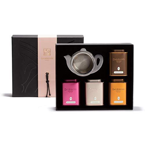 - Elegant gift box with 4 flavoured teas/infusions and a tea strainer